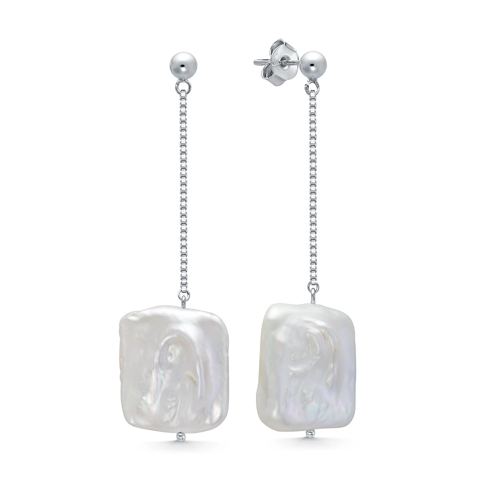 Серьги из серебра с белыми барочными жемчужинами 16-16,5 мм, (7513)