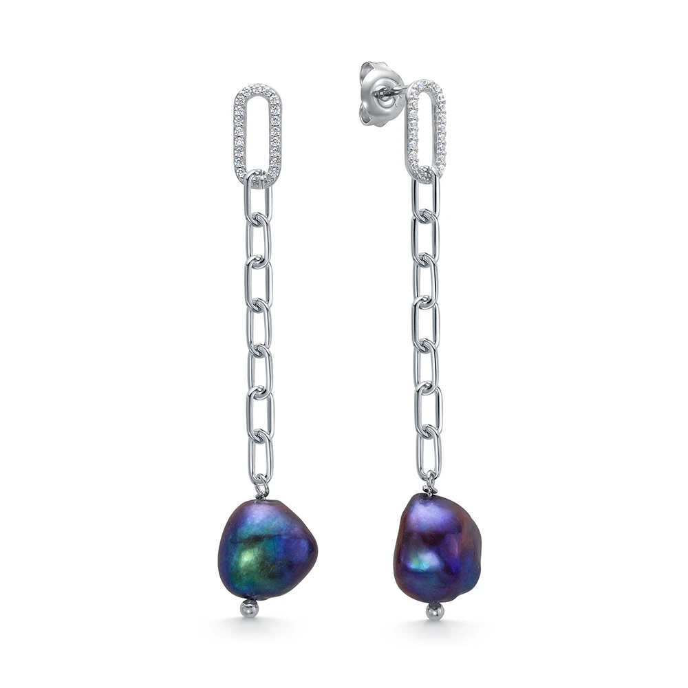 Эксклюзивные серьги выполнены из серебра 925 пробы, украшены черными пресноводными барочными жемчужинами. Качество жемчужин на серьгах наивысшее, жемчужины имеют очень яркий перламутровый блеск.