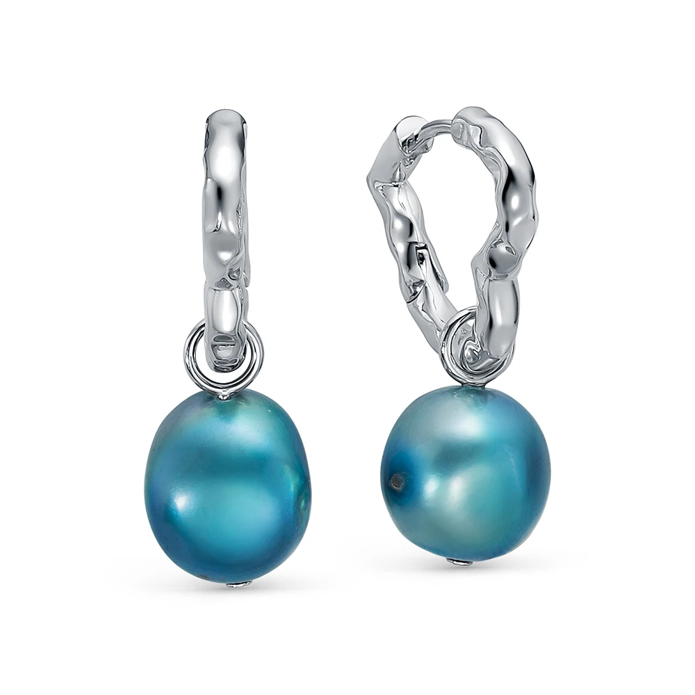 Серьги из ювелирного сплава с голубым барочным жемчугом 11-12 мм, (7453)
