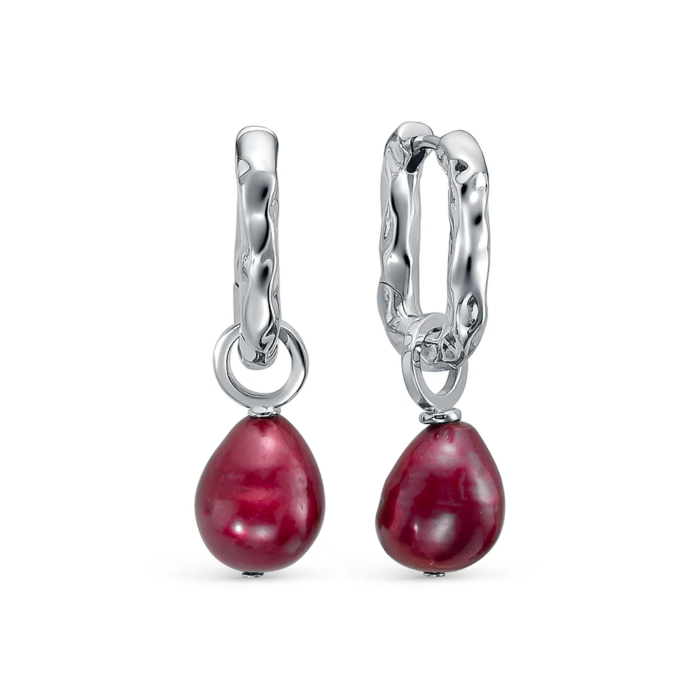 Серьги из ювелирного сплава с красным барочным жемчугом 11-12 мм, (7443)