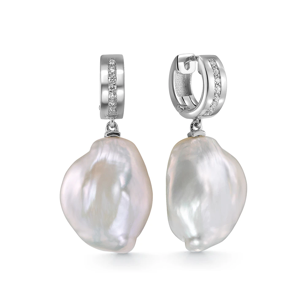 Серьги из серебра 925 пробы с белыми жемчужинами "Барокко" 18-22 мм, (7487)