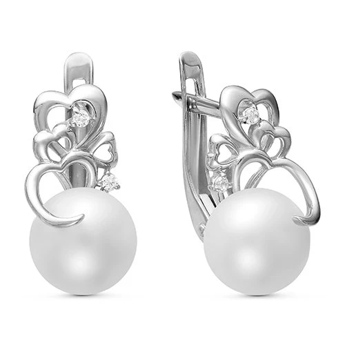 Серьги из белого золота с белыми речными жемчужинами 7,5-8 мм, (7586)
