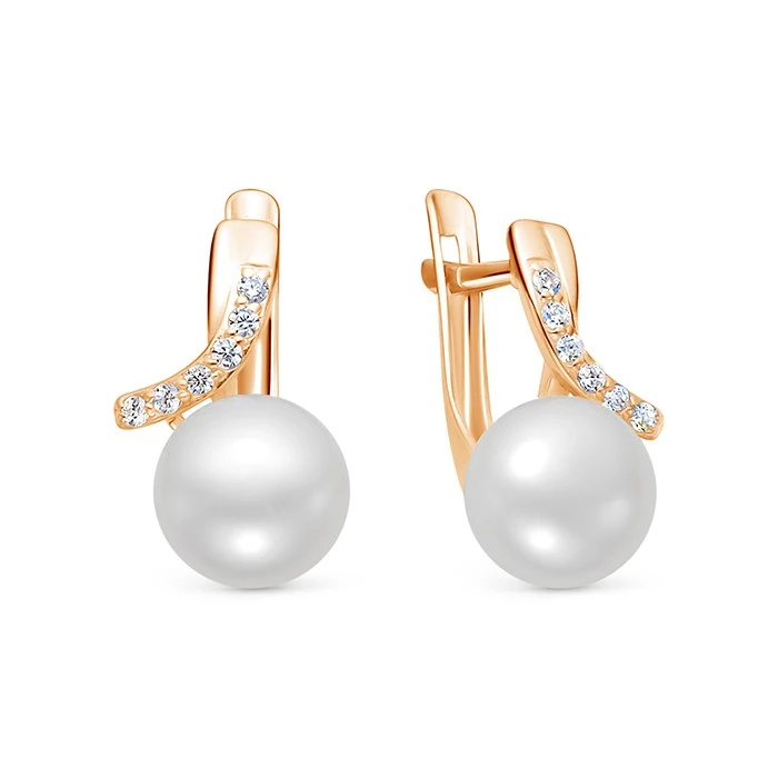 Серьги из красного золота с белыми речными жемчужинами 8,5-9 мм, (7385)