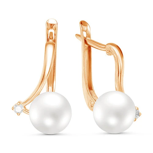 Серьги из красного золота с белыми речными жемчужинами 8,5-9 мм, (7559)