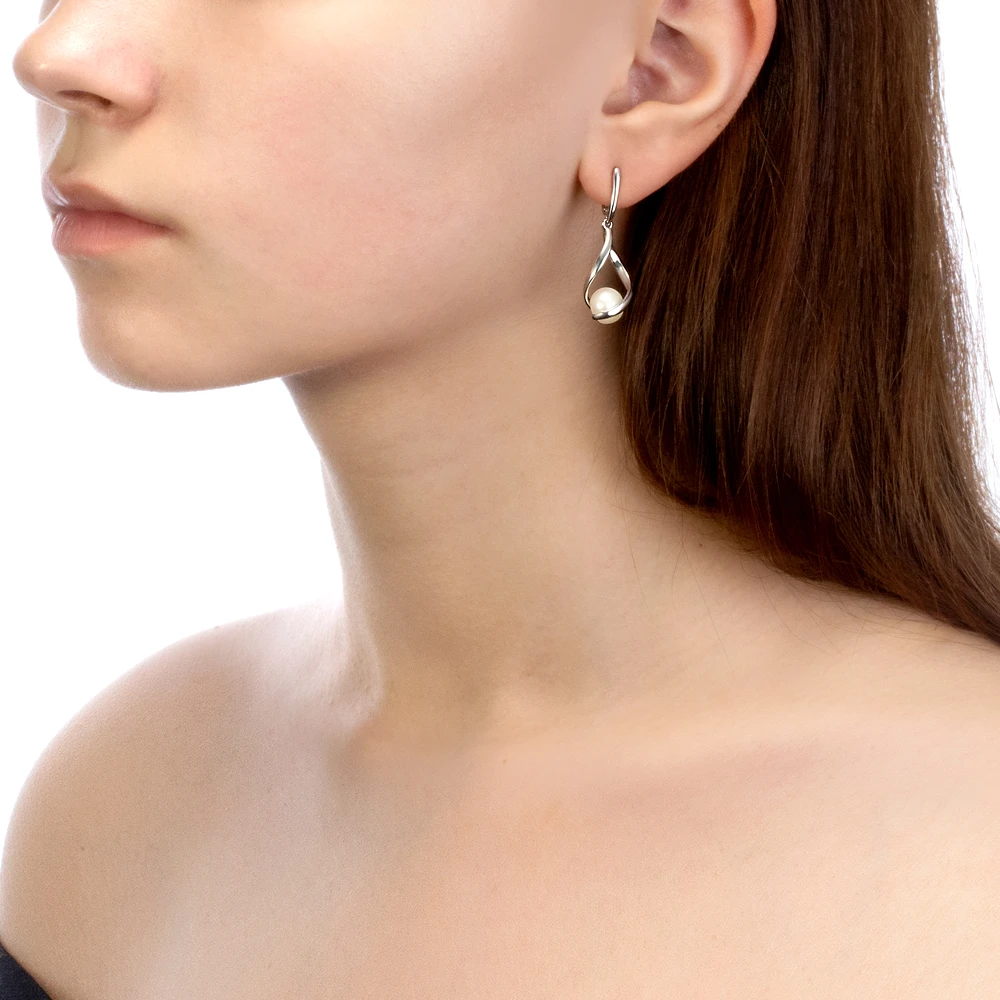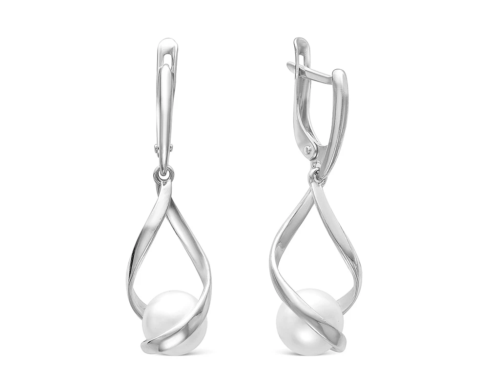 Серьги из белого золота с белыми речными жемчужинами 8 мм, (1404)