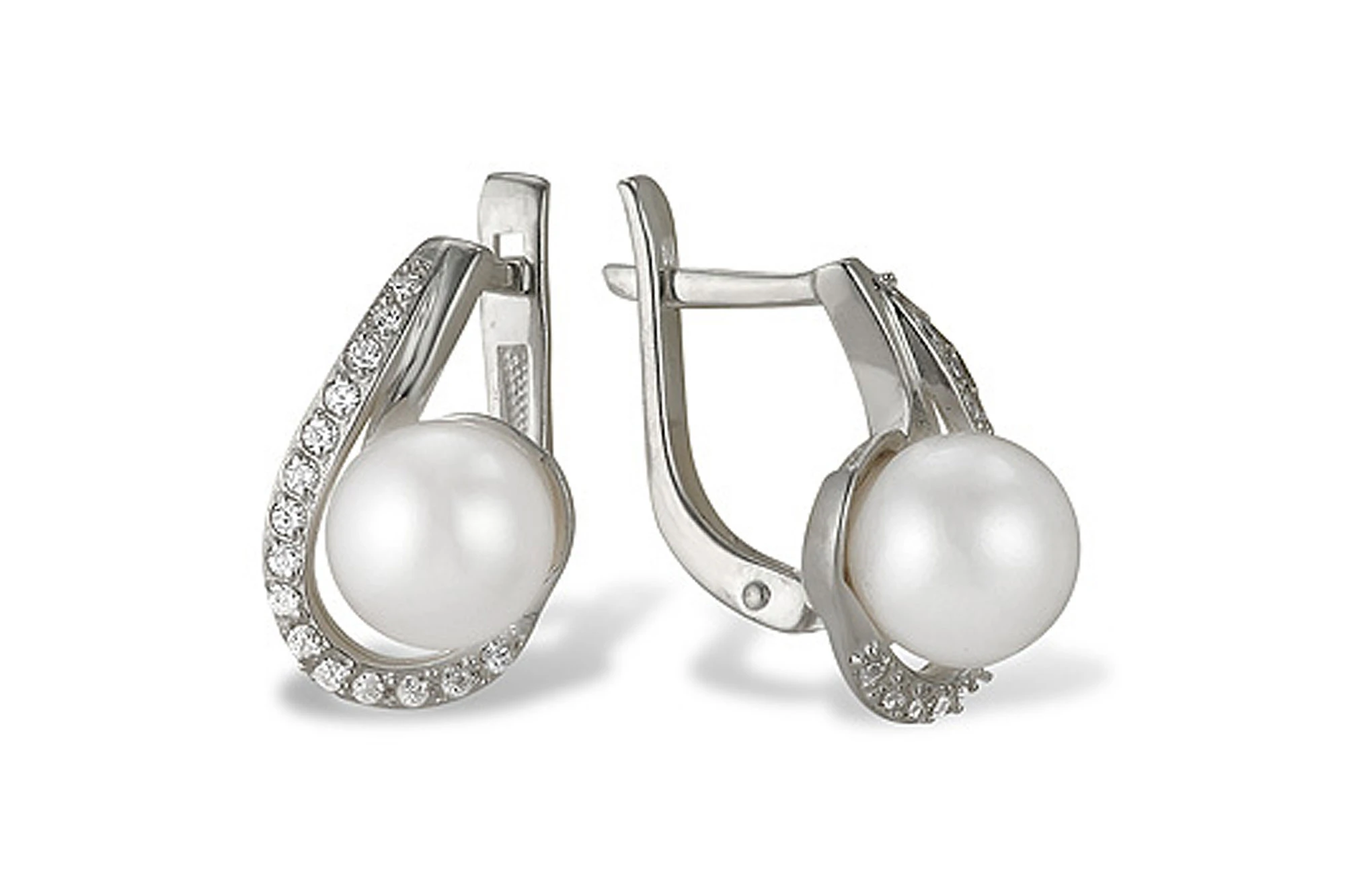 Серьги из белого золота с белыми речными жемчужинами 7-7,5 мм, (1960)