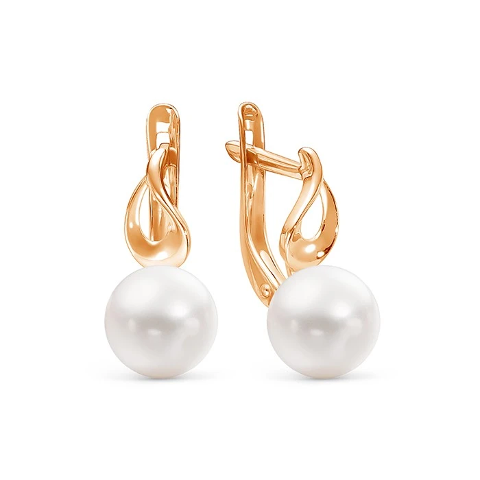 Серьги из красного золота с белыми речными жемчужинами 7,5-8 мм, (3734)