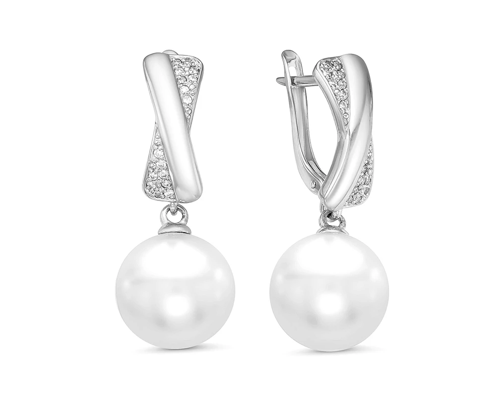 Серьги выполнены из белого золота 585 пробы и украшены крупными японскими пресноводными жемчужинами «Эдисон». Качество жемчужин на серьгах наивысшее, количество природных изъянов на поверхности жемчуга минимальное. Жемчужины имеют очень яркий перламутровый блеск, форма жемчужин идеальная круглая.