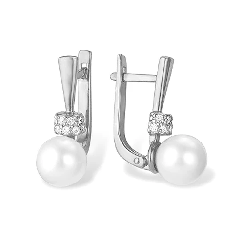 Серьги из белого золота с белыми речными жемчужинами 7,5-8 мм, (2211)