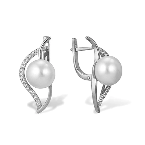 Серьги выполнены из белого золота 585 пробы и украшены жемчужинами пресной воды. Качество жемчужин на серьгах наивысшее, жемчужины имеют очень яркий перламутровый блеск, гладкую и ровную поверхность с минимальным количеством природных изъянов, форма жемчужин круглая (сфера).