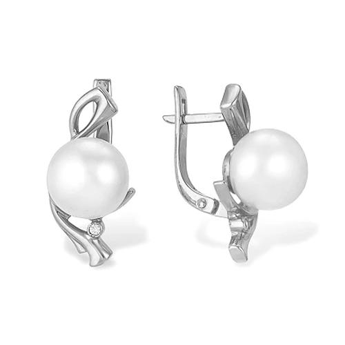 Серьги выполнены из белого золота 585 пробы и украшены жемчужинами пресной воды. Качество жемчужин на серьгах наивысшее, жемчужины имеют очень яркий перламутровый блеск, гладкую и ровную поверхность с минимальным количеством природных изъянов, форма жемчужин круглая (сфера).
