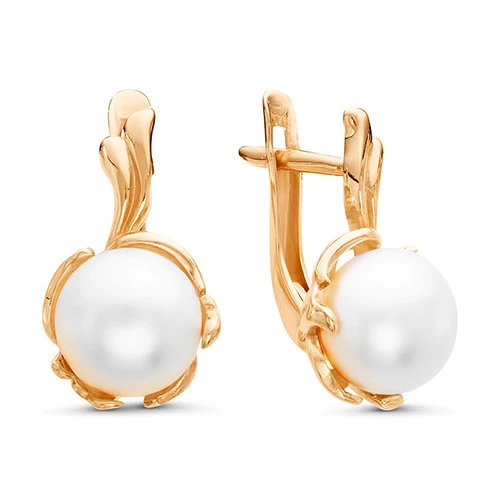Серьги из красного золота с белыми речными жемчужинами 7,5-8 мм, (6008)