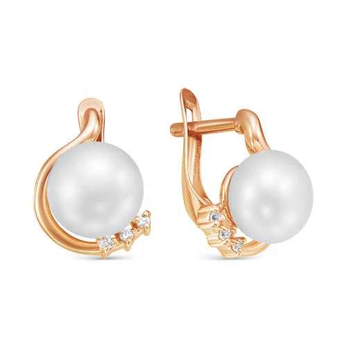 Серьги из красного золота с белыми речными жемчужинами 8,5-9 мм, (1419)