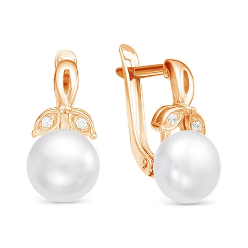 Серьги из красного золота с белыми речными жемчужинами 8,5-9 мм, (7691)