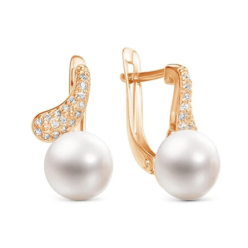 Серьги из красного золота с белыми речными жемчужинами 8,5-9 мм, (3729)