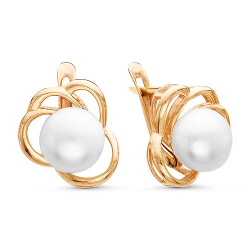 Серьги из красного золота с белыми речными жемчужинами 7-7,5 мм, (3733)