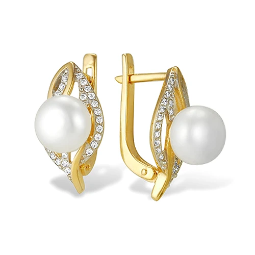 Серьги из желтого золота с белыми речными жемчужинами 8-8,5 мм, (2836)