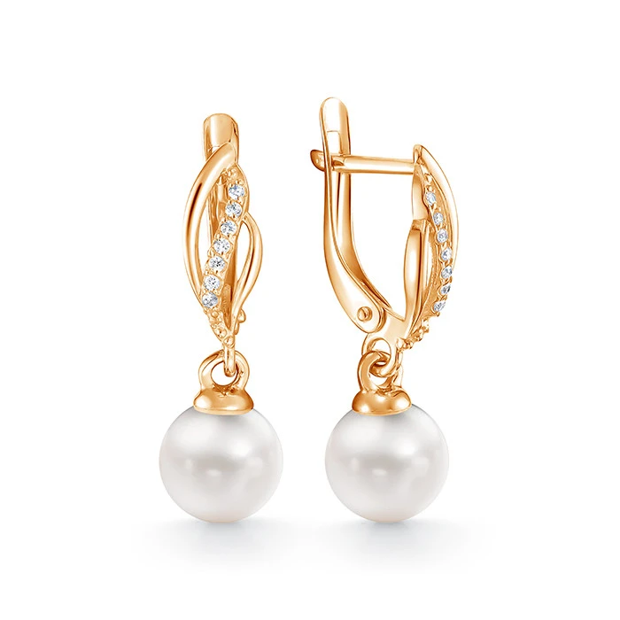 Серьги выполнены из желтого золота 585 пробы и украшены жемчужинами пресной воды. Качество жемчужин на серьгах наивысшее, жемчужины имеют очень яркий перламутровый блеск, гладкую, ровную поверхность, форма жемчужин овальная.