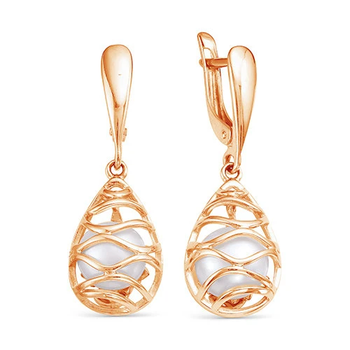 Серьги из красного золота с белыми речными жемчужинами 8 мм, (2209)
