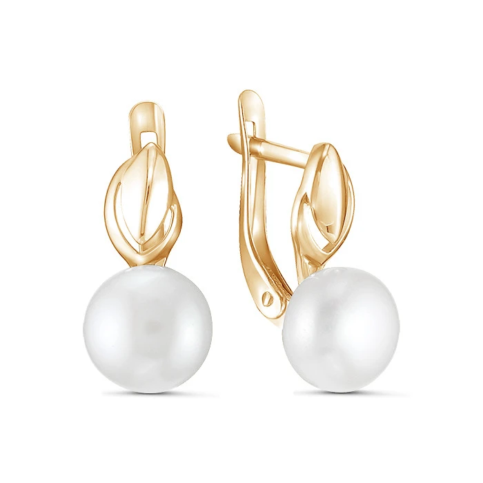 Серьги из красного золота с белыми речными жемчужинами 7,5-8 мм, (2212)