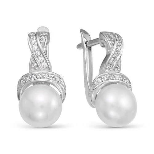 Серьги из белого золота с белыми речными жемчужинами 9,5-10 мм, (2213)