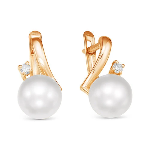 Серьги из красного золота с белыми речными жемчужинами 8,5-9 мм, (6079)