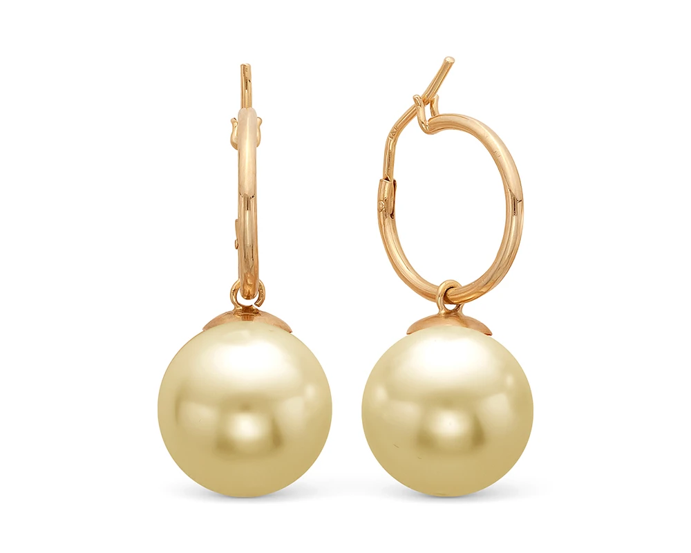 Серьги из желтого золота с золотистыми морскими Австралийскими жемчужинами 12-12,5 мм, (2316)
