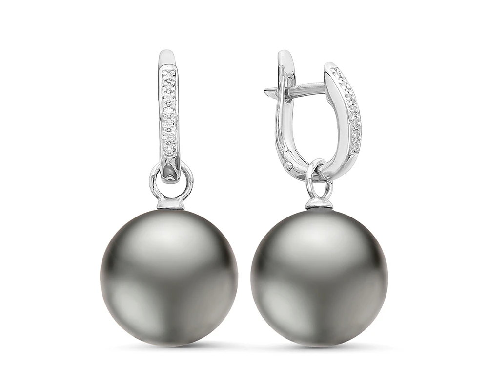 Серьги из белого золота с серебристыми морскими Таитянскими жемчужинами 11-11,5 мм, (2319)