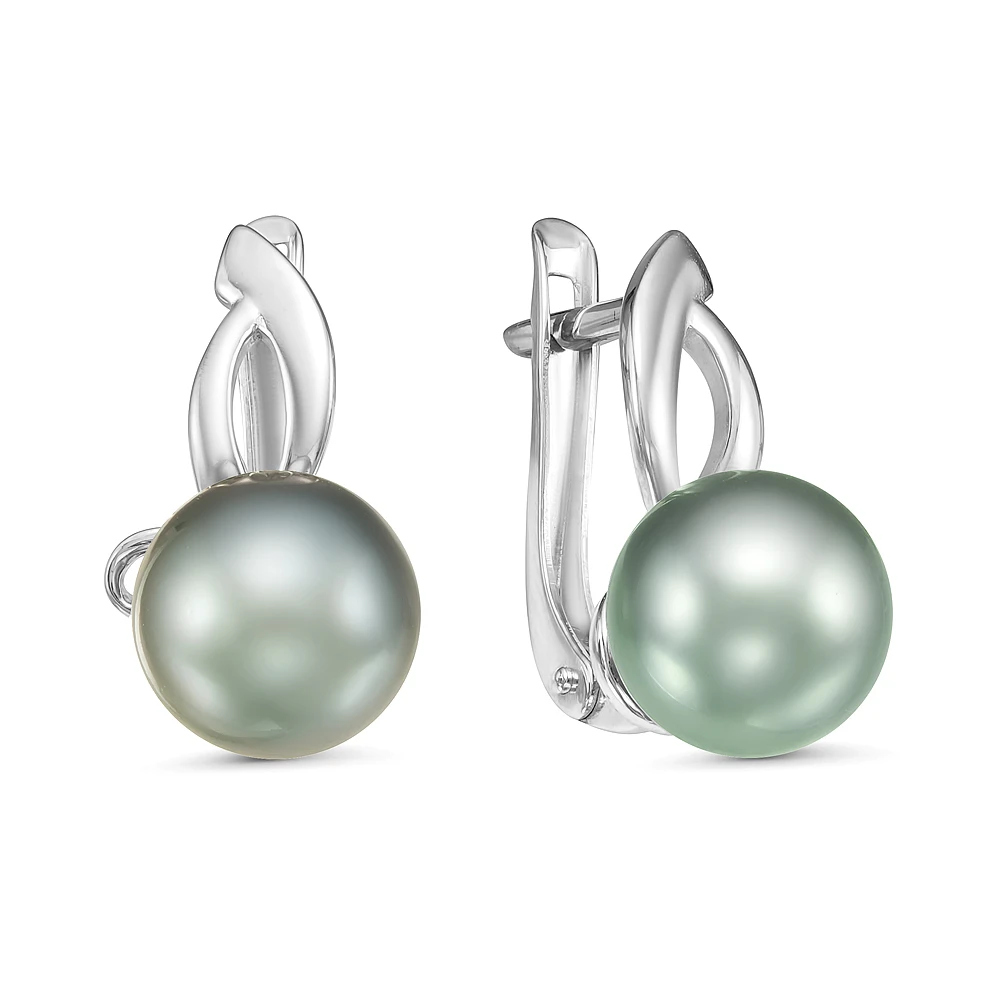 Серьги из золота с серебристыми морскими Таитянскими жемчужинами 9-9,5 мм, (6133)