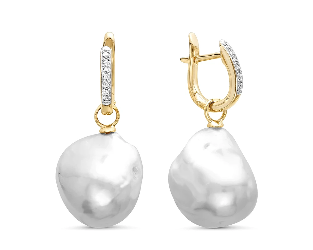 Серьги из желтого золота с белыми японскими жемчужинами "Барокко" 16-20 мм, (3810)