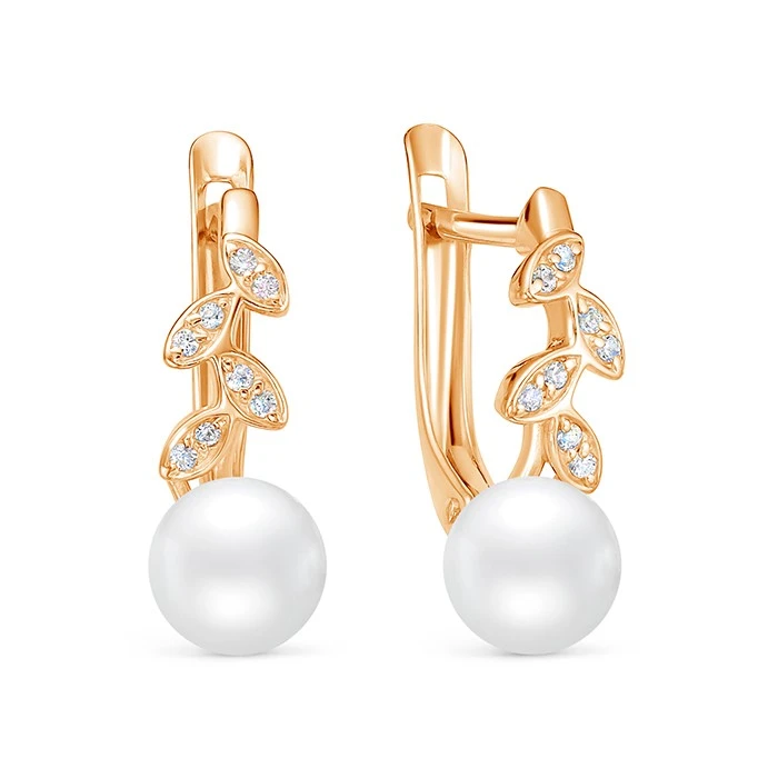Серьги из красного золота с белыми речными жемчужинами 7,5-8 мм, (7693)