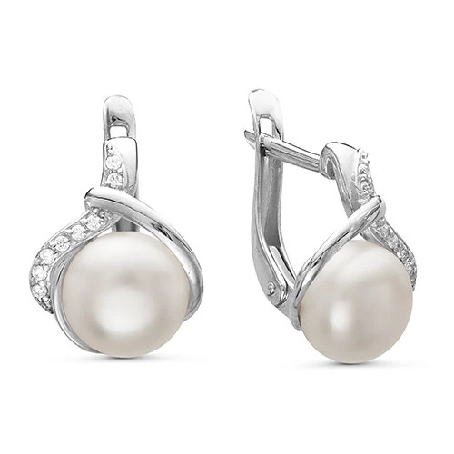 Серьги из белого золота с белыми речными жемчужинами 7-7,5 мм, (7582)