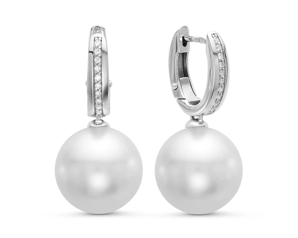 Серьги выполнены из белого золота 585 пробы и украшены крупными японскими пресноводными жемчужинами «Эдисон». Качество жемчужин на серьгах наивысшее, количество природных изъянов на поверхности жемчуга минимальное. Жемчужины имеют очень яркий перламутровый блеск, форма жемчужин идеальная круглая.