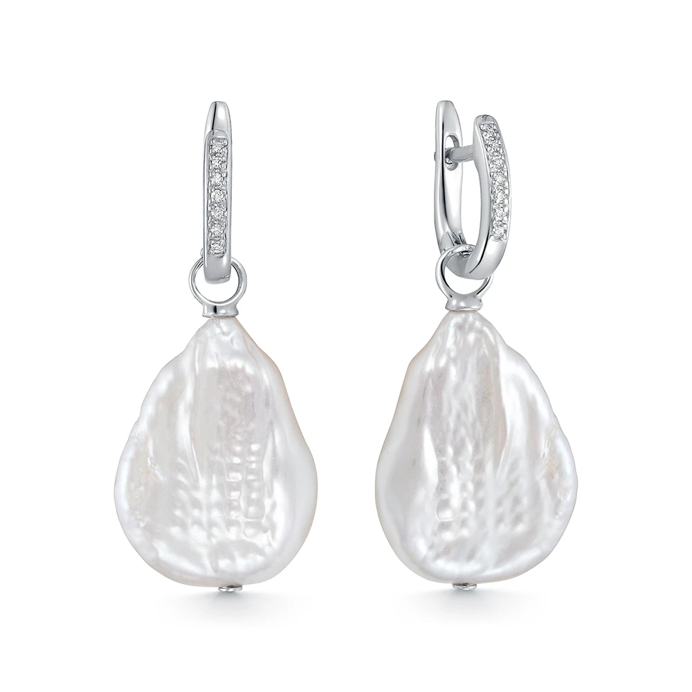 Серьги из серебра c белыми речными жемчужинами "Барокко" 16-20 мм, (7278)