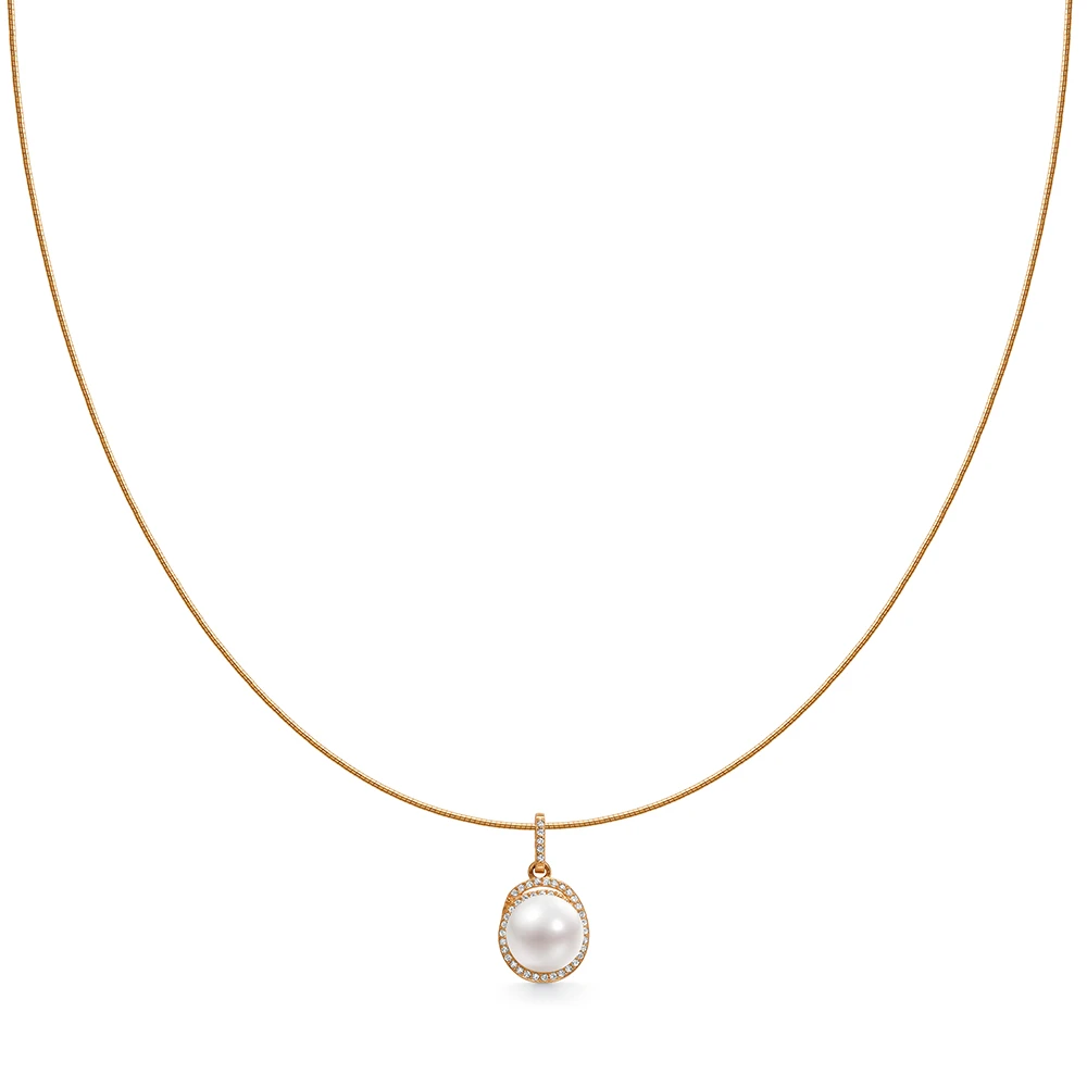 Колье из серебра с позолотой, украшенное белой речной жемчужиной 10,5-11 мм, (3631)