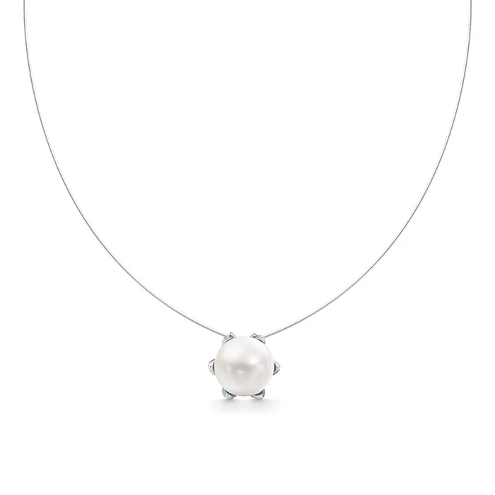 Колье-невидимка на леске из серебра с белой речной жемчужиной. Жемчужина 11-11,5 мм, (7721)