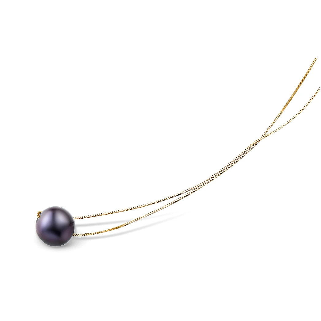 Цепочка из серебра 925 пробы с золотым покрытием "желтое золото" украшена прекрасной черной пресноводной жемчужиной идеальной сферической формы.