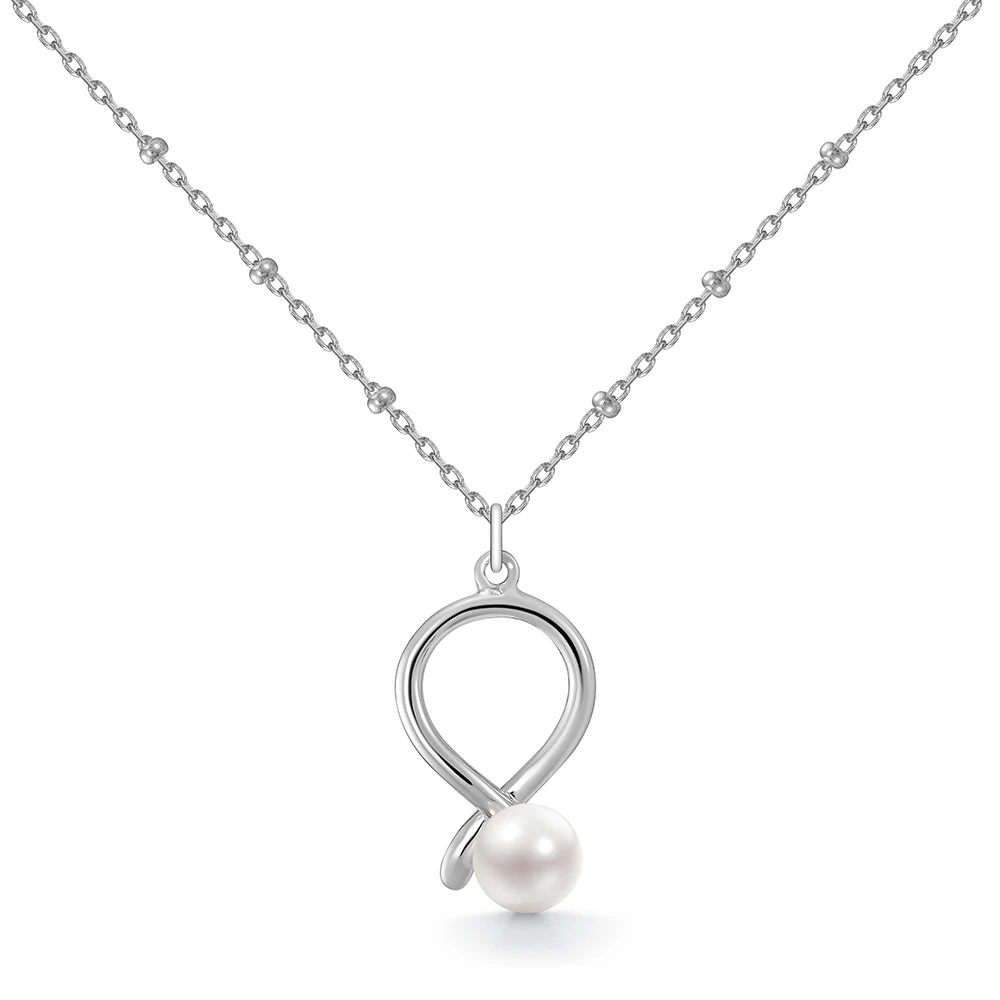 Колье из серебра 925 пробы с белой речной жемчужиной 5,5-6 мм, (4078)