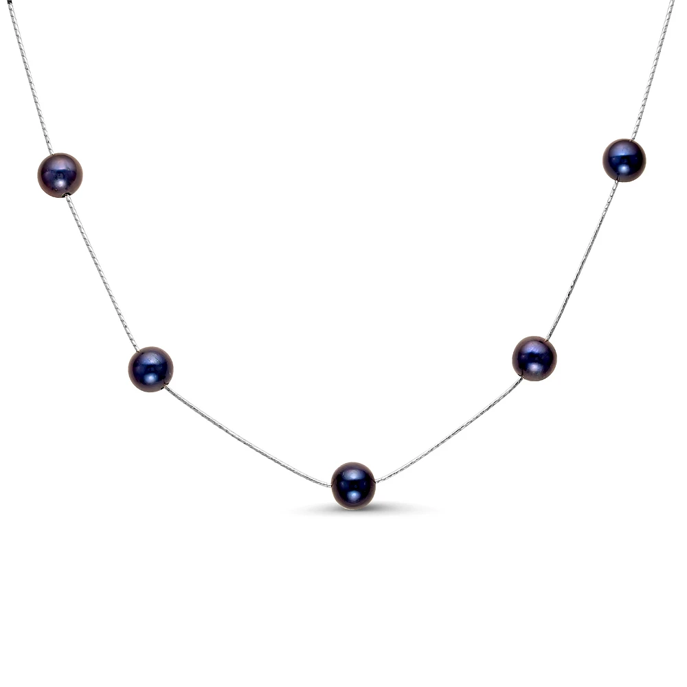 Цепочка из серебра 925 пробы украшена прекрасными черными пресноводными жемчужинами идеальной сферической формы.