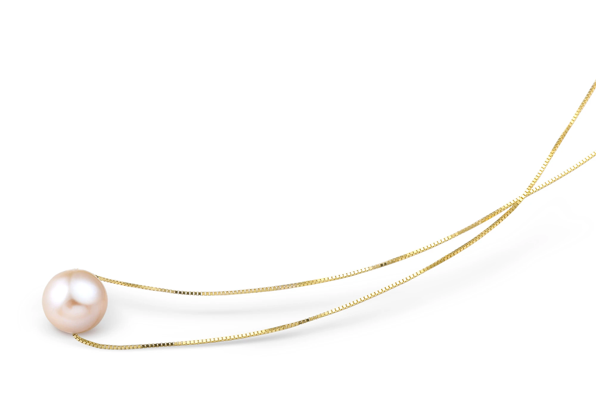 Цепочка из серебра 925 пробы с покрытием "желтое золото" украшена прекрасной розовой пресноводной жемчужиной идеальной сферической формы.