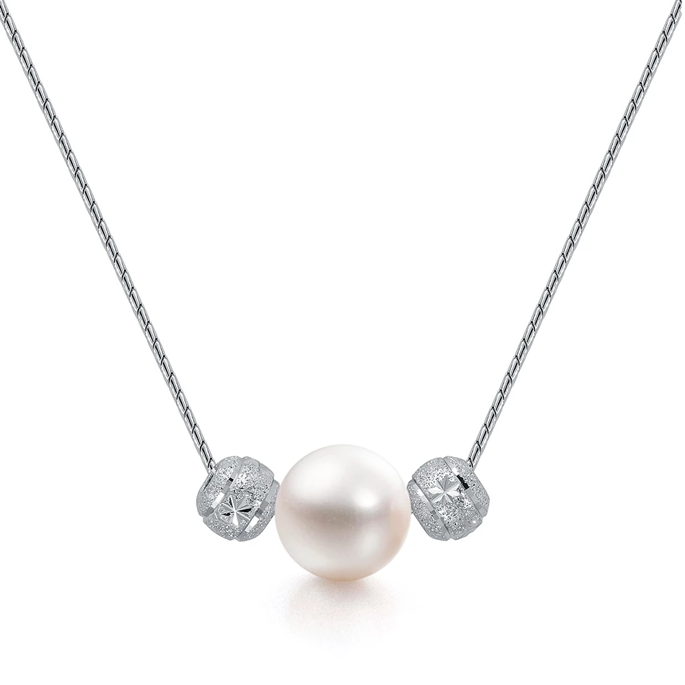Цепочка из серебра 925 пробы с белой речной жемчужиной 9,5-10 мм, (6227)