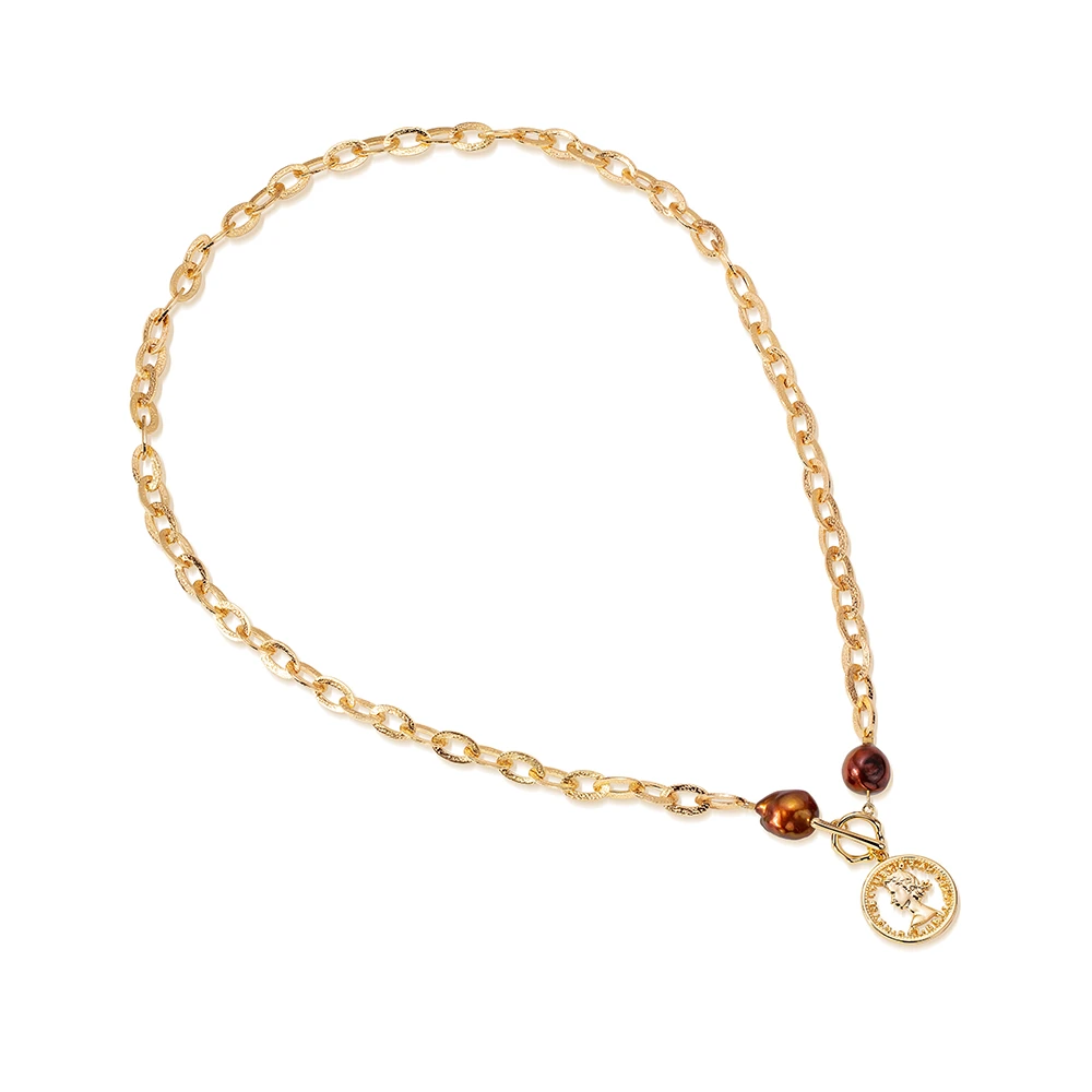 Цепочка-колье изготовлена из гипоаллергенного ювелирного сплава, украшена натуральным барочным жемчугом.