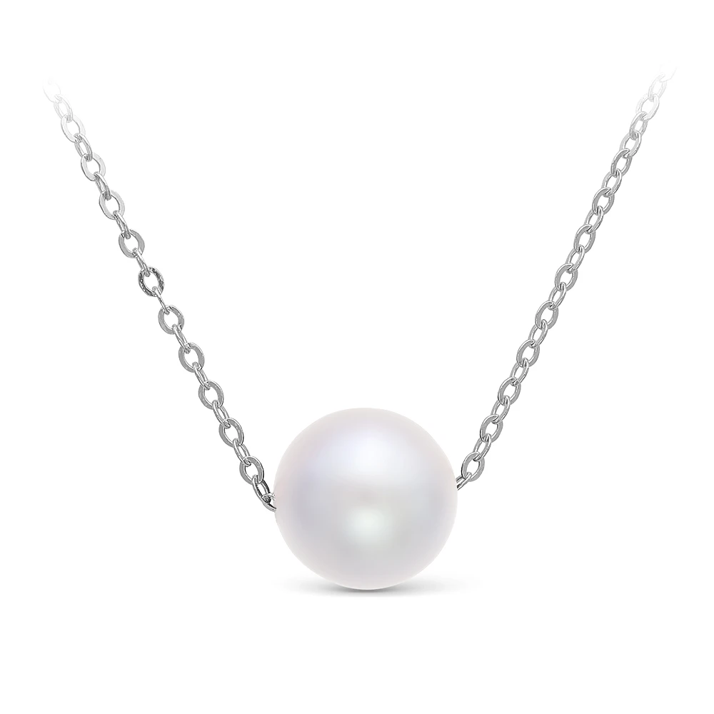 Цепочка из белого золота с белой круглой морской жемчужиной 8,5-9 мм. Длина 42 см, (7109)