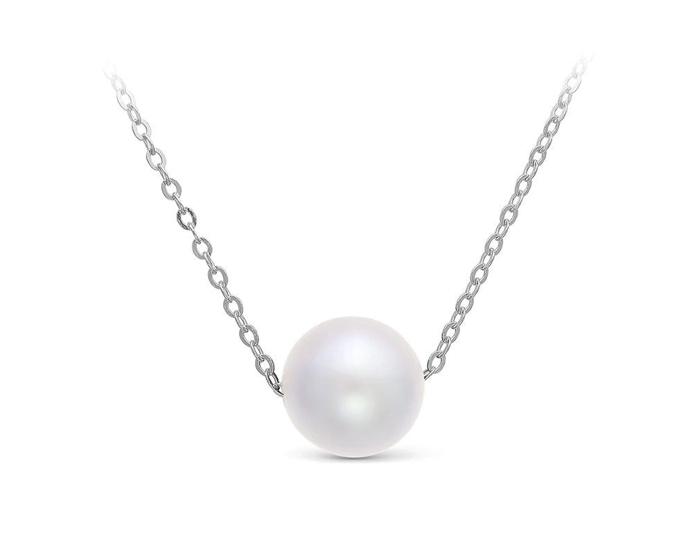 Цепочка из белого золота с белой круглой морской жемчужиной 8,5-9 мм. Длина 50 см, (2239)