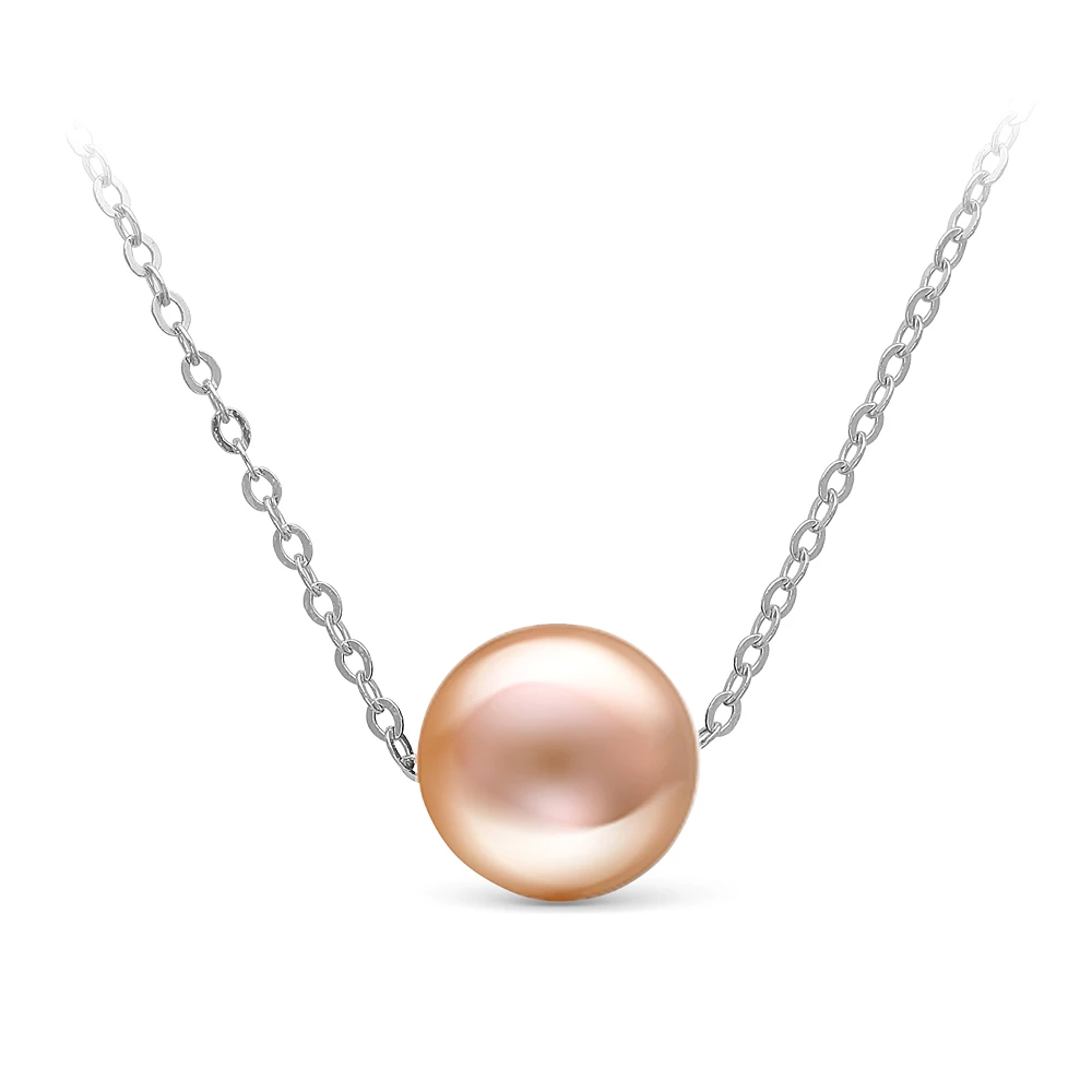Цепочка из золота 585 пробы украшена прекрасной розовой морской жемчужиной идеальной сферической формы без дефектов поверхности. Родина жемчужины — теплые воды Южно—Китайского моря.