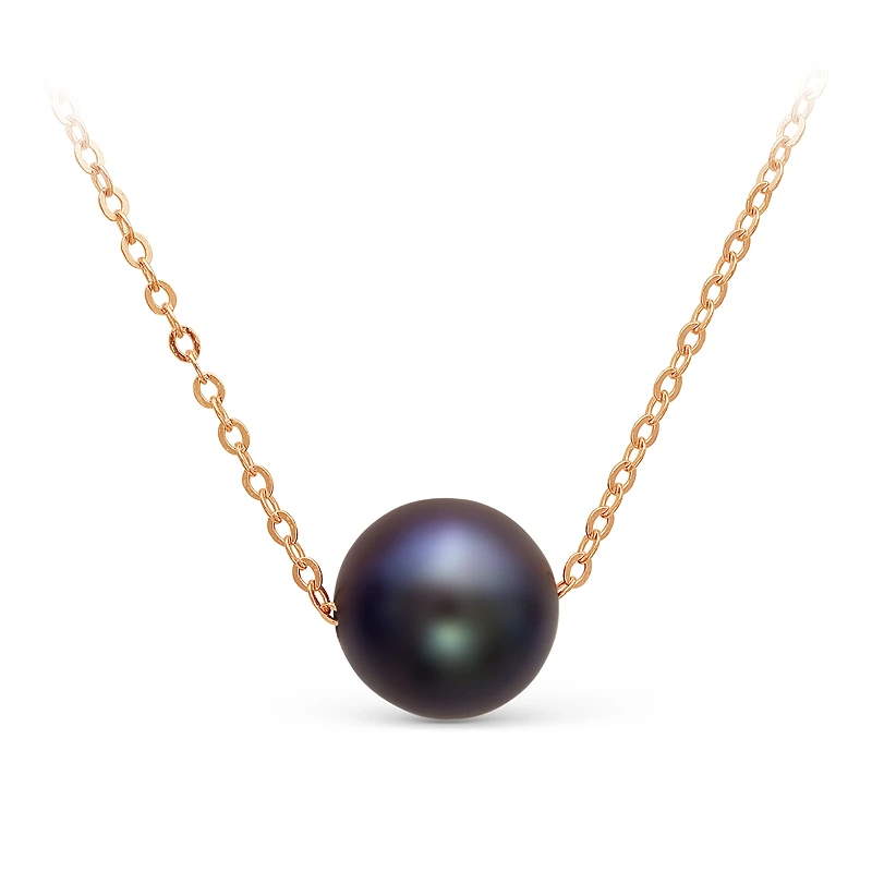 Цепочка из красного золота с черной морской жемчужиной 9-9,5 мм. Длина 42 см, (7064)