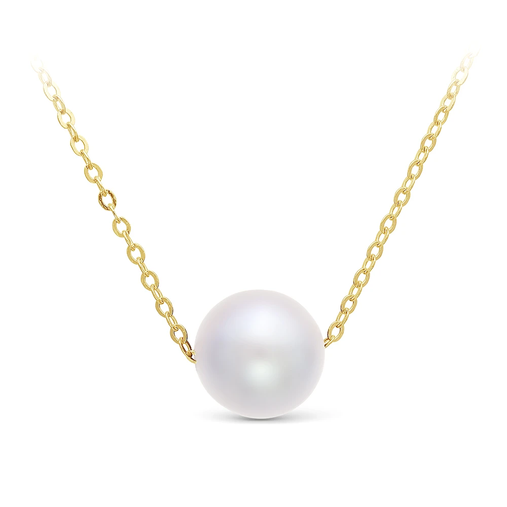 Цепочка из золота 585 пробы украшена прекрасной белой морской жемчужиной идеальной сферической формы без дефектов поверхности. Родина жемчужины — теплые воды Южно—Китайского моря.