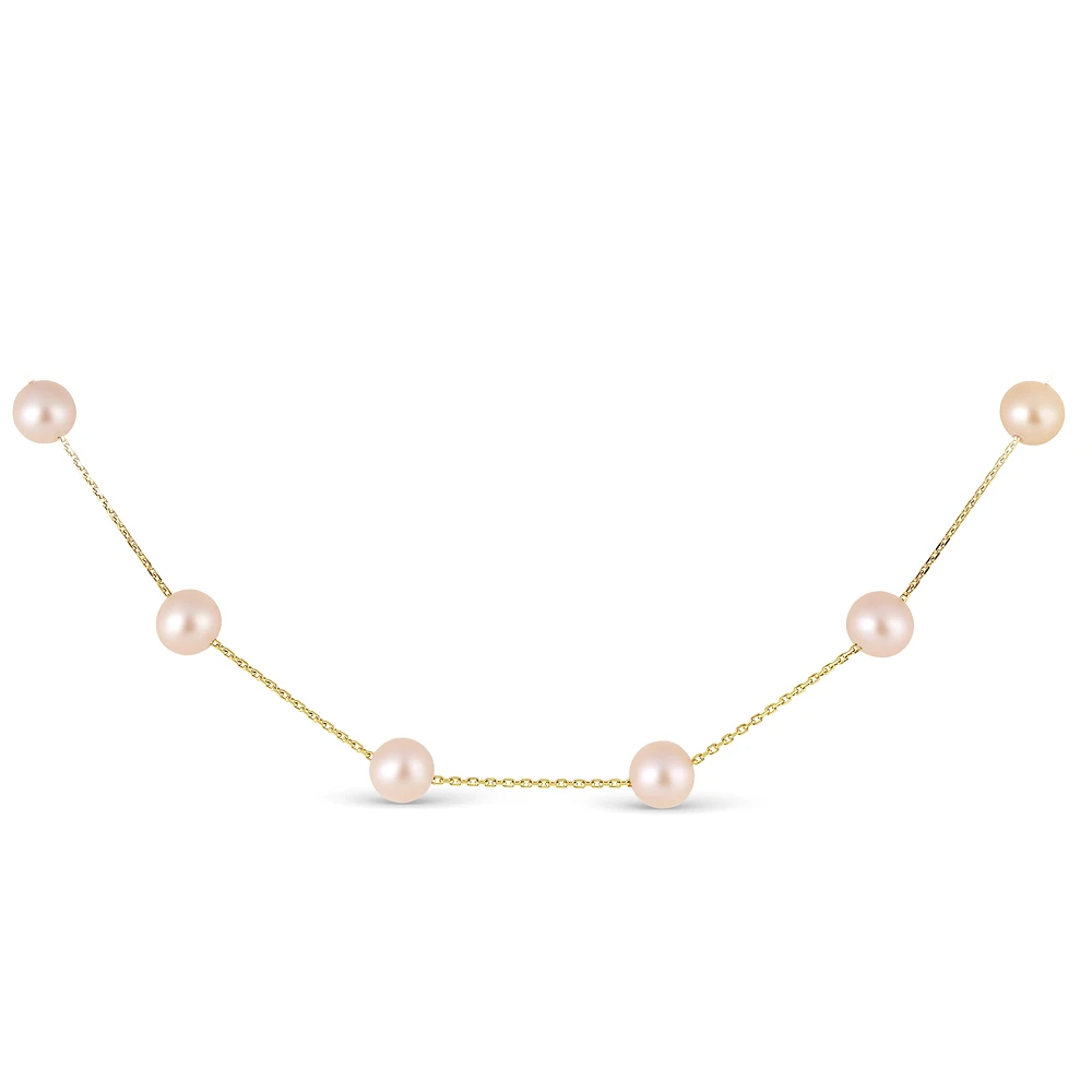 Цепочка из желтого золота с розовыми морскими жемчужинами 7-7,5 мм. Длина 40 см, (2555)
