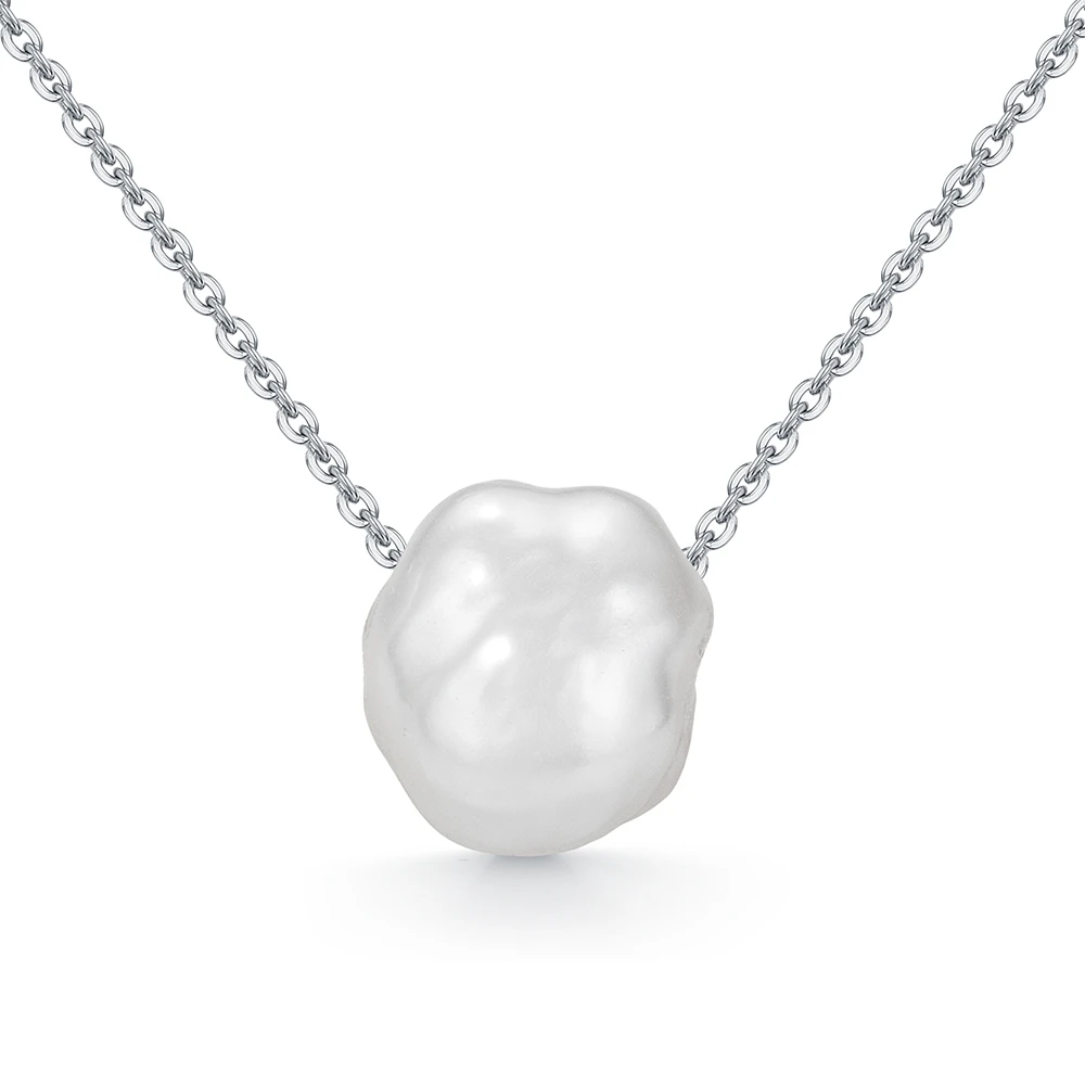 Цепочка из белого золота с белой барочной речной жемчужиной 10-11 мм. Длина 45 см, (7539)
