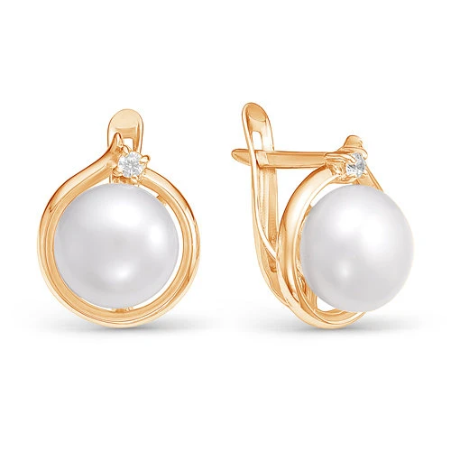 Серьги из красного золота с белыми речными жемчужинами 9,5-10 мм, (2219)